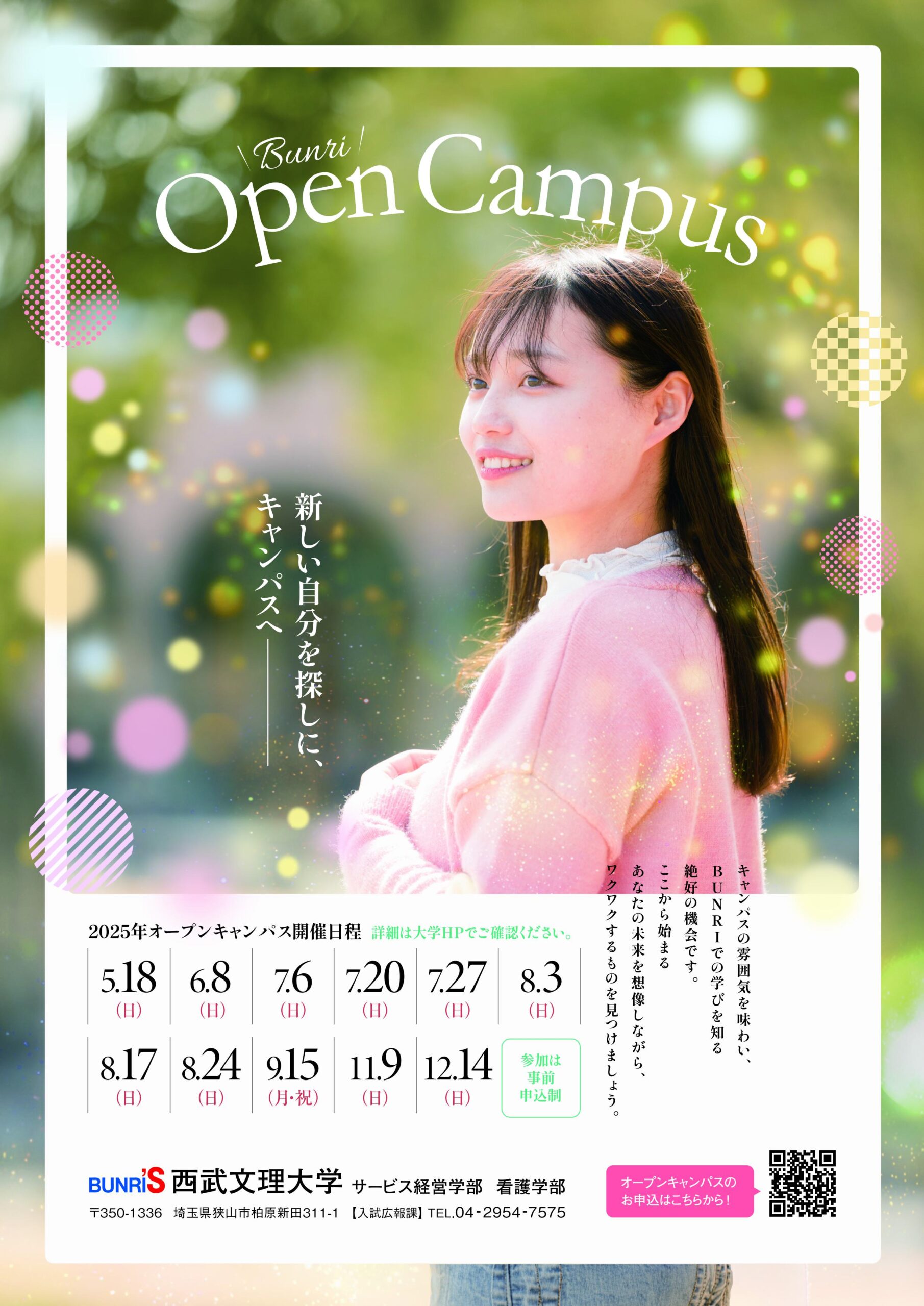 サービス経営学部・看護学部ともに、5月からのオープンキャンパスでは2026年度入学者選抜情報をお伝えするほか、体験授業も多数ご用意しています。また、7月からは入学者選抜対策講座をスタートします!(予定)