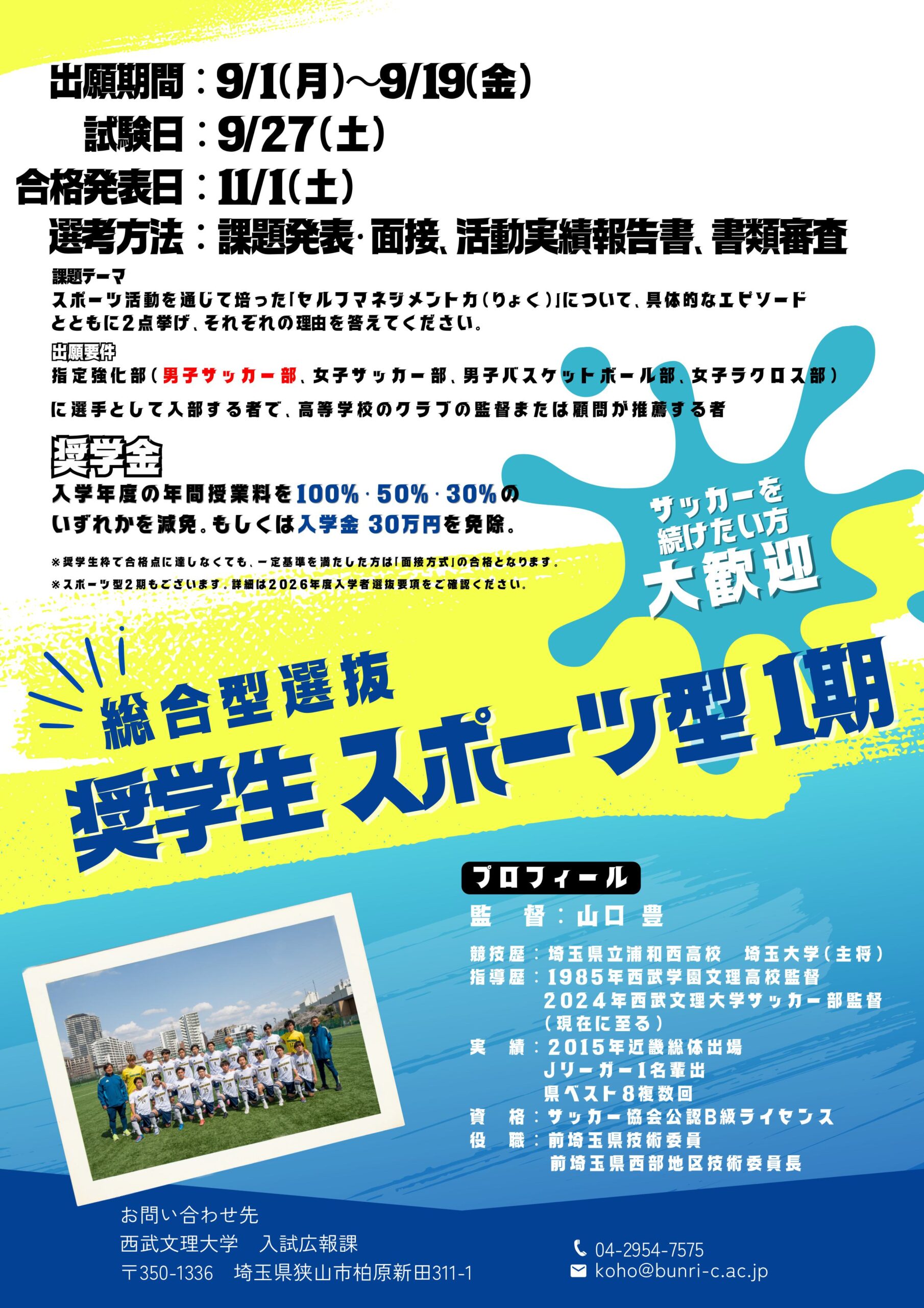 西武文理大学 指定強化部男子サッカー部では、以下の日程で高校生を対象とした練習会を開催いたします。