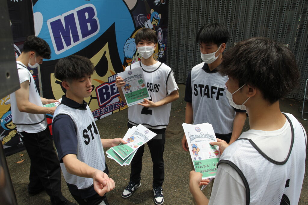 運営チームは、受付、チケット販売、グッズなどの物販、ファールボールの注意喚起や観客席の警備、BSO(電光掲示板)の表示などを担当します。集客・応援チームは試合前のビラ配りや、集客のためのイベント企画、試合中の応援を担当します。