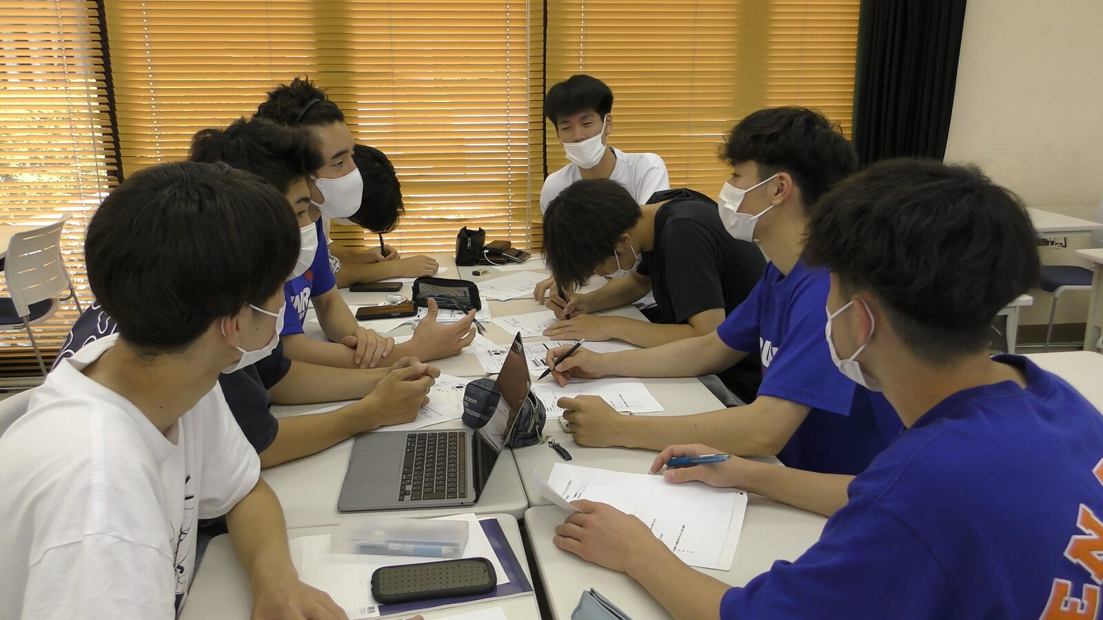 この試合の翌週の授業では、今回の実践学修を振り返りました。各チーム、良くできた所と今後の課題を話し合い、各自がレポートにまとめます。ディスカッションを通じて、実習での出来事・行動だけではなく、実践の場で感じた色々な気持ちや、直感的に理解したものを言語化していきます。こうして、説明・伝達を可能にするコミュニケーション能力を養いながら、よりスポーツマネジメントについて理解を深めていくのです。