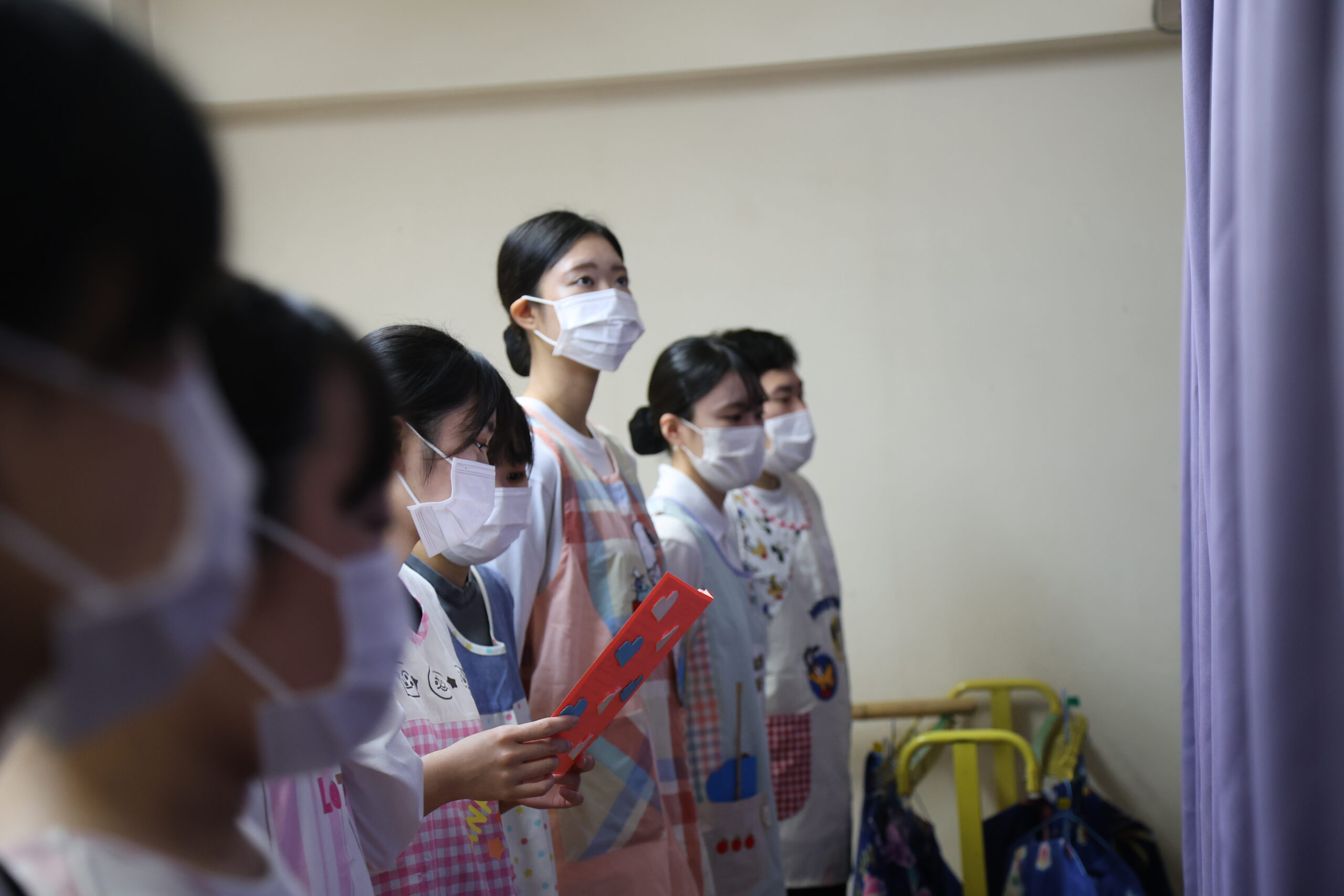 所沢市の保育園。ホールに設置された小さなステージで、10名の学生たちが、ステージ側から幕が開くのを待っていた。マスクの下の表情の全てを読み取ることは出来ないが、その真剣な目から、緊張が伝わってくる。緊張を紛らわせようと、深呼吸する息遣いも聞こえてくる。