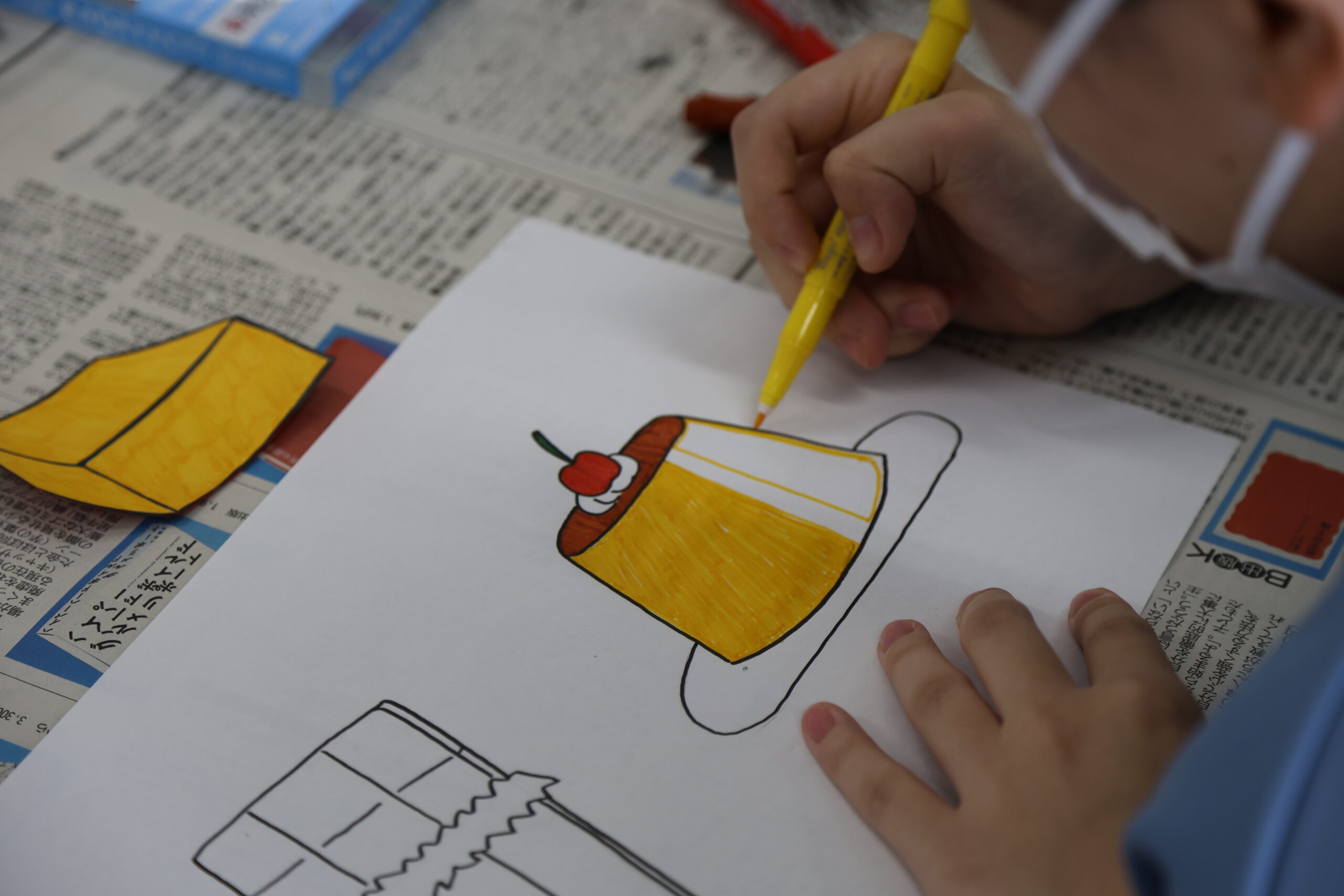9月。学内の教室には、本番当日に向けて、黙々とプリンのイラストに色を塗っていく学生の姿があった。もう一人はアイスクリーム、他の一人はポテトチップス…。丁寧に、きれいに、そして黙々と作業する。