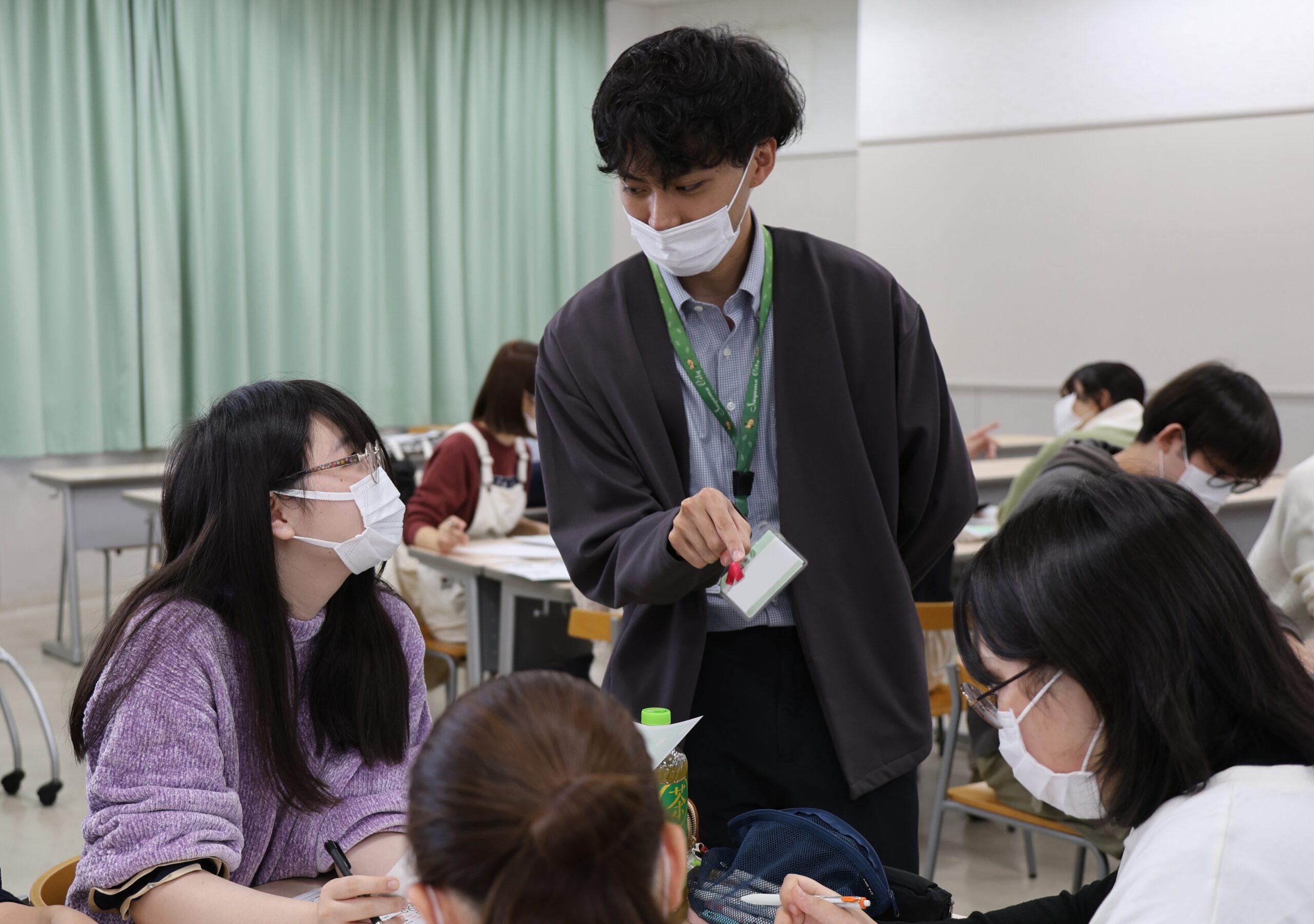 今回は、看護学部2年生が、授業「健康教育論(公衆衛生看護領域)」の一環として、狭山市の保健師と一緒にグループワークを行った。テーマは、“どうしたら、健康に無関心な若年層に健康マイレージ事業への関心を持ってもらえるか”である。