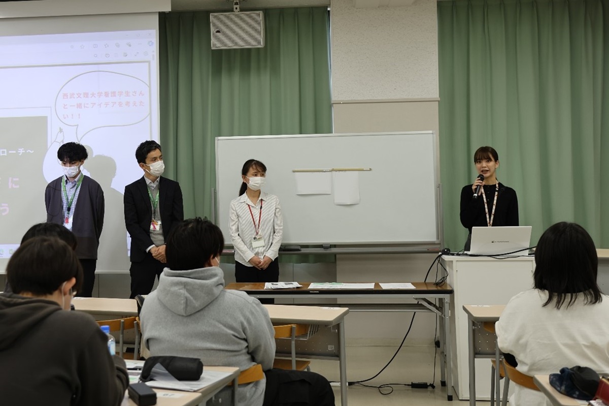 「事業を知ってほしい!」「無関心層にも届けたい!」事業担当者の思いを受け、学生との意見交換により狭山市の課題解決を図るという、このコラボ企画が実現した。「私たちは行政や予算に縛られているので、学生さんの自由な発想が知りたいです。」と話す保健師の皆さん。
